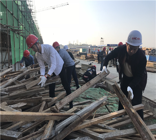 當(dāng)天,二支部全體黨員前往馬壕污水處理廠擴容工程現(xiàn)場參觀學(xué)習(xí)。項目負(fù)責(zé)人詳細(xì)的介紹了項目基本情況,并帶領(lǐng)全體黨員在現(xiàn)場開展治理揚塵、搬運模板、構(gòu)件等志愿服務(wù)活動。黨員們佩戴黨徽,頭戴安全帽,以一名項目建設(shè)者的身份積極參加馬壕污水處理廠現(xiàn)場建設(shè),以實際行動支持項目建設(shè),助推重點工程進(jìn)度。